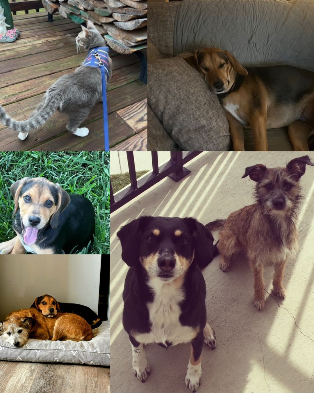 Lily is my hound mix, rescued at just six weeks old. We didn’t expect her to grow so big, but she’s our gentle giant. She’s obsessed with chasing squirrels and chewing things she shouldn’t—but we love her anyway. Her snoring is legendary and louder than most grown men.